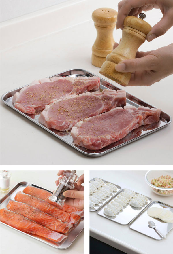下味をつけた食材の一時置きやお肉や魚をバットの上で下ごしらえすれば、サッとそのまま冷蔵庫で一時保存出来ます。