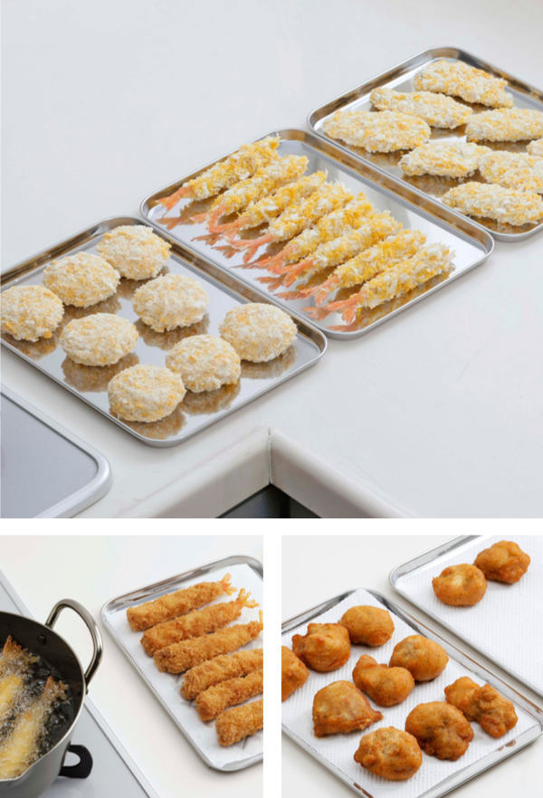 たくさん切った野菜やお肉などの食材を小分けにしたり、ギョーザ、エビフライ、コロッケなどのフライをきれいに並べられます。浅型なので食材の出し入れがしやすく扱いやすいです。