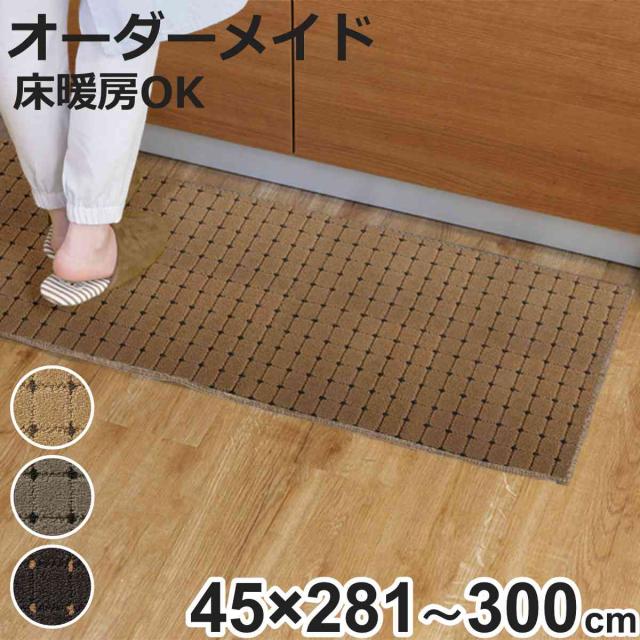 キッチンマット 1cm単位 オーダー 45×281〜300cm ドットスクア オーバーロック加工 ( 日本製 キッチン マット サイズオーダー 45cm イージーオーダー 防炎 抗菌 防ダニ 制電 台所マット 長さ選べる )