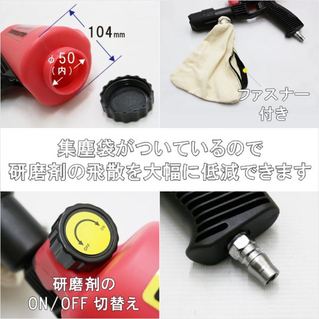 サンドブラスター サンドブラストガン 0.9L ノズルカバー4種類付 小型 ハンディタイプ ポイントブラスター ポータブル 重力式 KIKAIYA