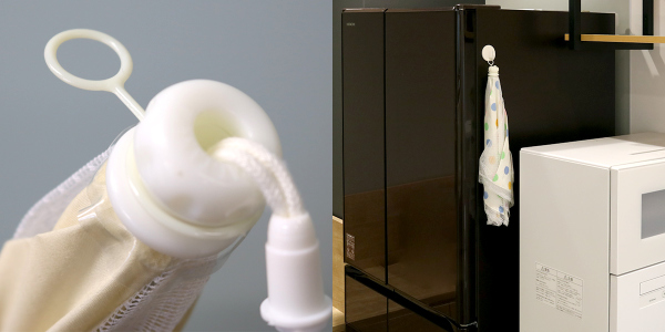 吊り下げリング付きなので、フックに引っ掛ければ場所を取らず吊り下げて収納ができて便利です。