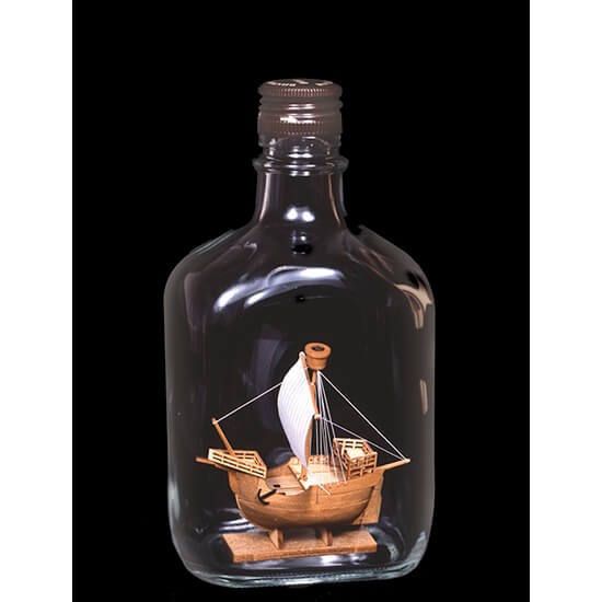 ウッディジョーのボトルシップは船体を適切に分割し、難しいとされるロープ張りを極力ボトルの外で行い、マスト・ヤードは折りたたんでから挿入する方式を採用。模型製作のベテランでも困難とされるボトルシップを誰でも手軽に楽しんで頂けるようにしました。船体は最新のレーザーカット技術で加工し、特長ある船体を確実に再現することができます。その完成品は、貴方のコレクションの一翼を担えるモデルとなることと確信しております。
