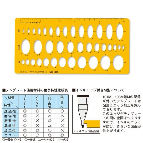 ウチダ(マービー) テンプレート NO212M 楕円定規 品番:012-0011