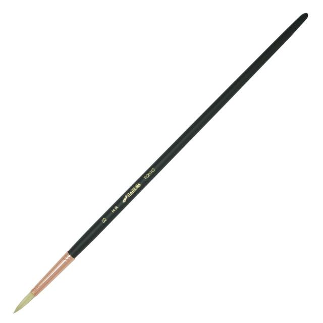 最高品質のブタ毛から造られた丸筆です。コシの弾力があってまとまりの良いHRは、他に類をみない最高級品と言えるでしょう。目にやさしい銅色金具とグリーンの軸で、HFの丸筆として専門家に愛用され続けています。