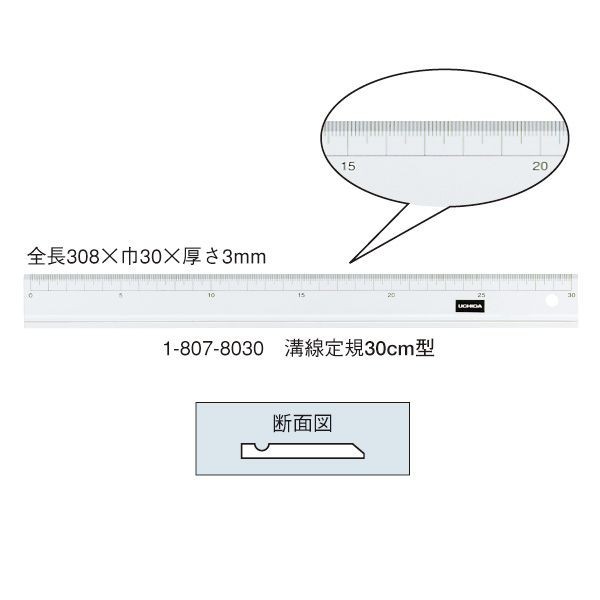 ウチダ(マービー) 溝線定規 30cm×3mm 品番:1-807-8030