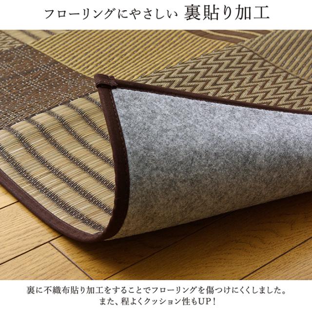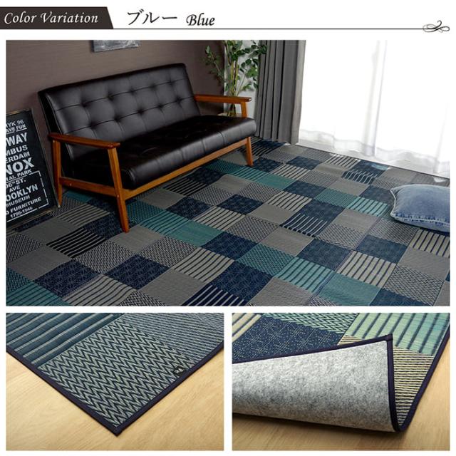 ■商品名:い草 花ござ ござ ラグ カーペット マット 純国産 約174×174cm 江戸間2畳 DX京刺子 裏:不織布 パッチワーク風 春夏用 日本製