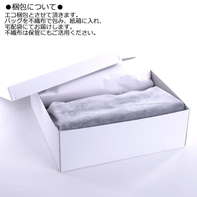 エコ梱包とさせて頂きます。バッグは不織布で包み、紙箱に入れた状態のものを宅配袋に入れてお届けします。