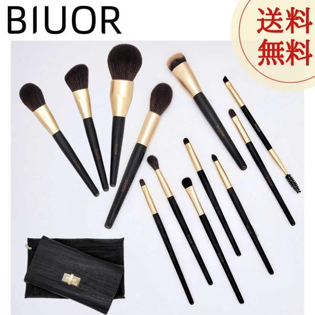 【送料無料】 BIUOR 豪華12本メイクブラシセット 天然毛 アイシャドウ 超買得 化粧筆 高級タクロン 天然毛 大毛量 超柔らかい 専用ポーチ付 携帯 収納 ケース プレゼント
