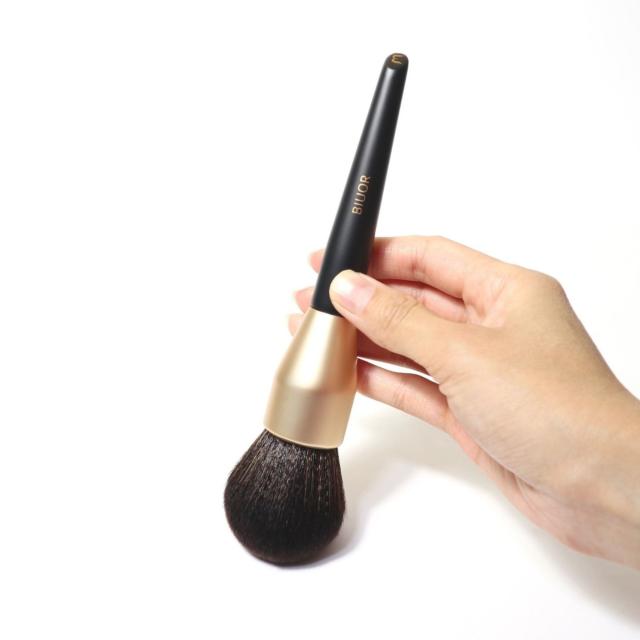 ・高級ナイロン毛と動物毛を使用しており、毛量や毛足の長さ、形にこだわって、パウダーなどが肌にぴったりつくように設計。美しく整えられたブラシヘッドに