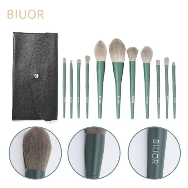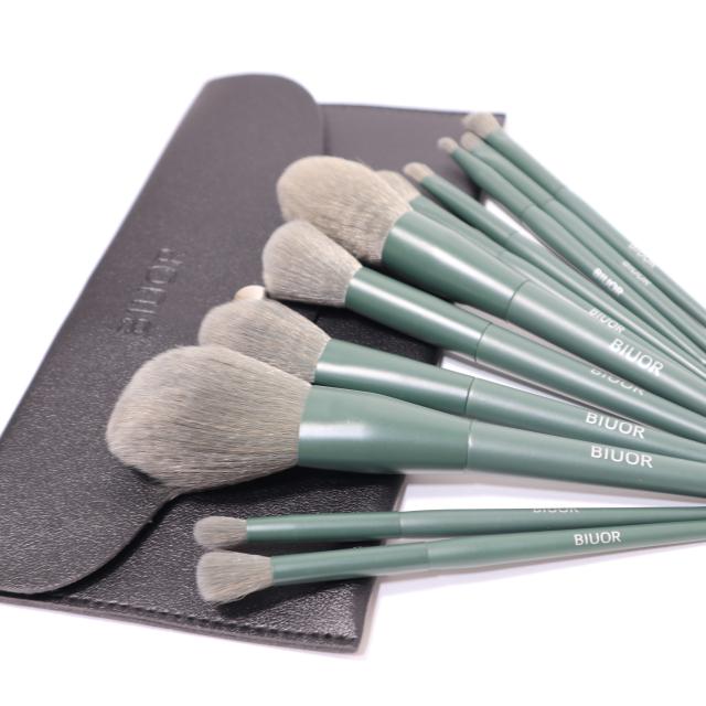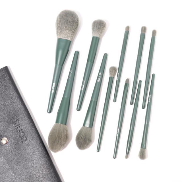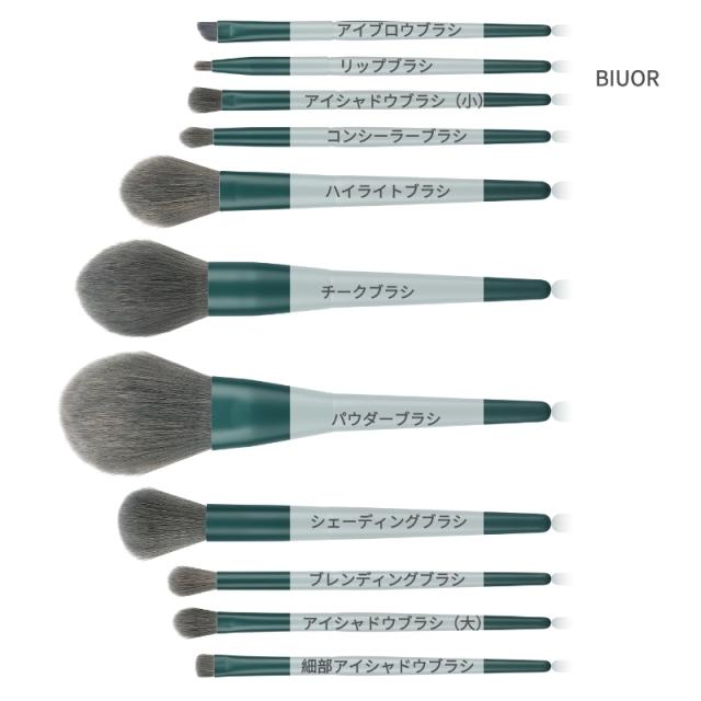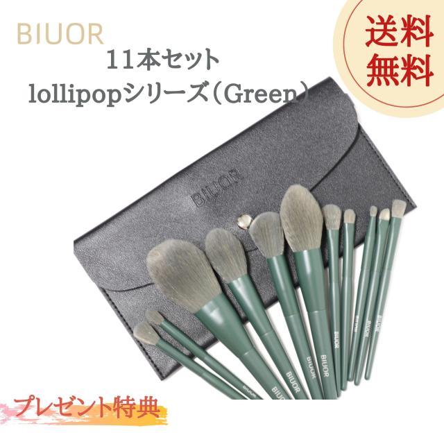 【送料無料】 BIUOR 11本メイクブラシセット アイシャドウ プレゼント 化粧ブラシ 高級タクロン 毛量たっぷり 超柔らかい 専用ポーチ付 携帯 収納 lollipop シリーズ GREEN プレゼント