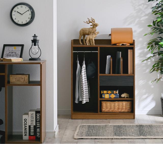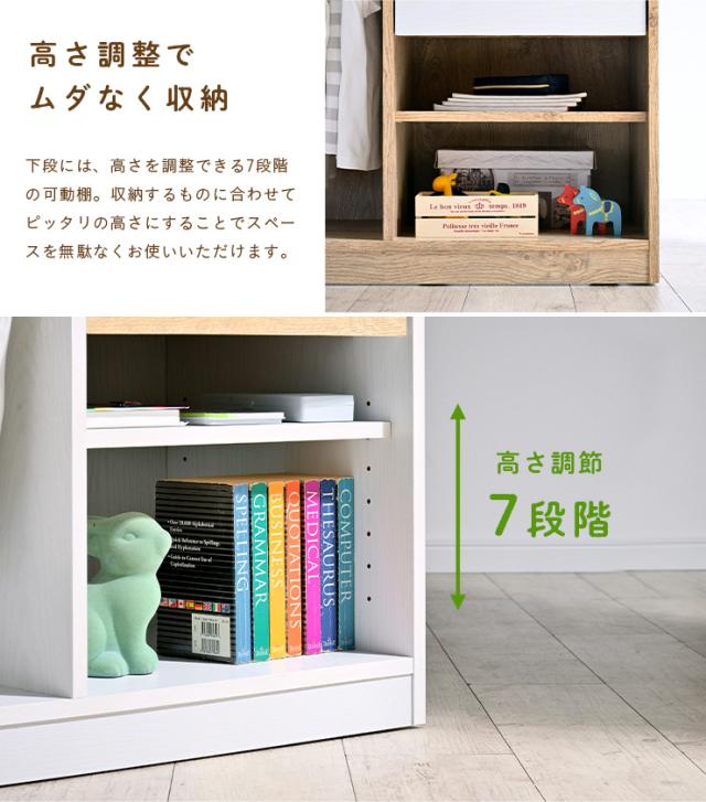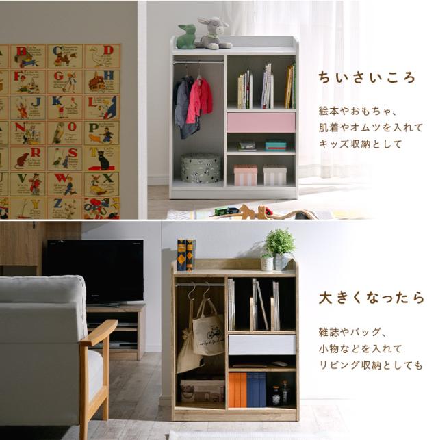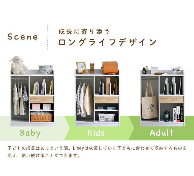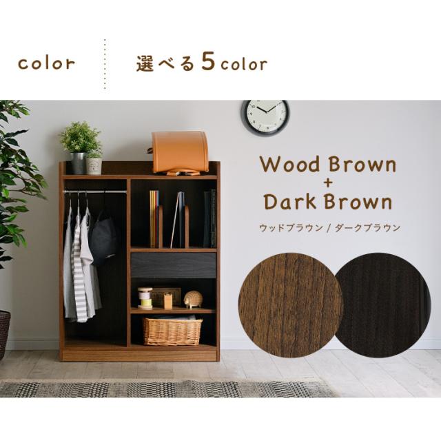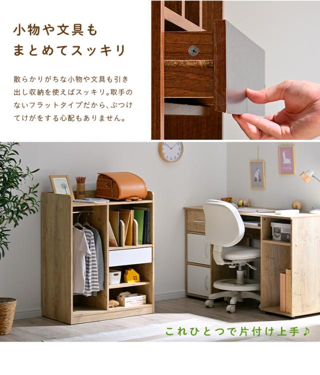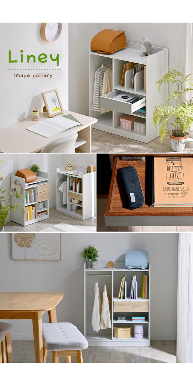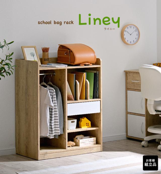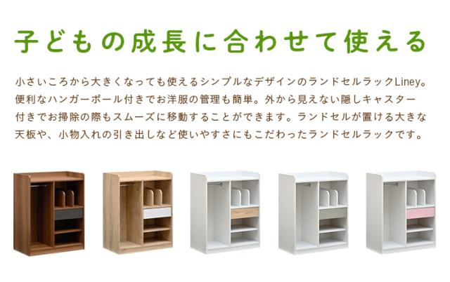 ランドセルラック ランドセル収納 幅72cm キャスター付き キッズ ハンガーラック リビングラック 本棚 ハンガーラック ワードローブ 木製 おしゃれ 子供部屋 ハンガーポール 引き出し収納付き Liney(ライニー) 5色対応