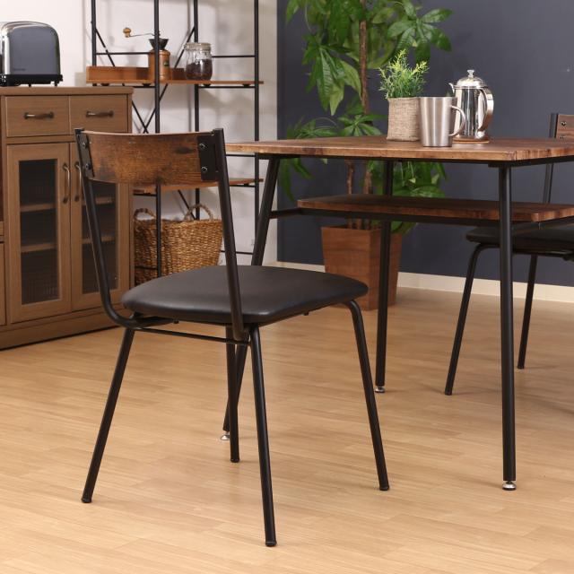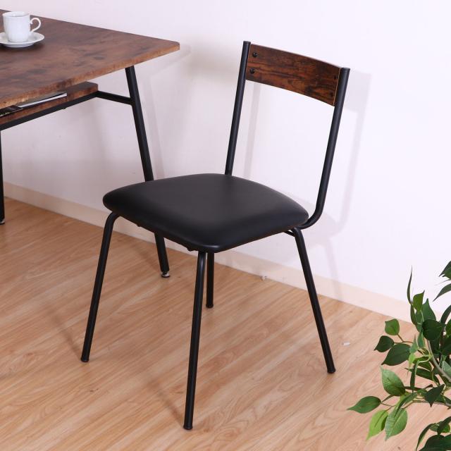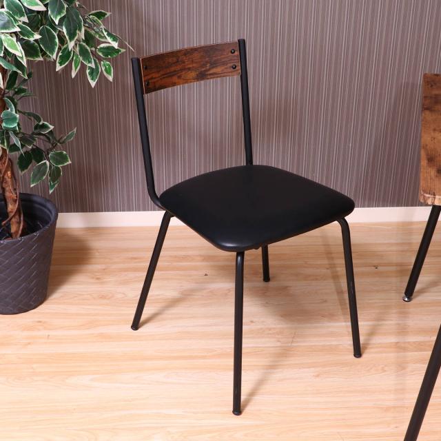 ダイニングチェア 座面高45cm ヴィンテージ調 ( デスクチェア 食卓 椅子 レザー調 PVC 座面 お手入れ簡単 スチール脚 肘なし リビング チェア 異素材 木目調 )