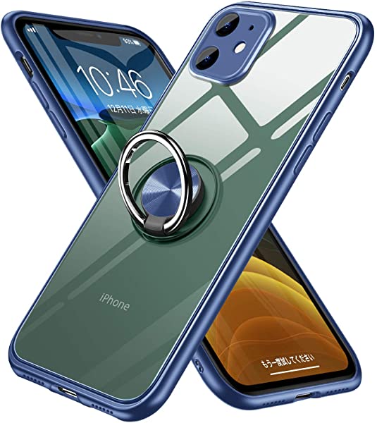 iPhone 11 ケース リング クリア ケース 耐衝撃 半透明 全面 PC TPU スマホケース 軽量 薄型 衝撃吸収 カメラ保護 車載ホルダー対応 携帯ケース 指紋防止 キズ防止 ストラップホール付き アイフォン11 カバー 一体型 高級感 青