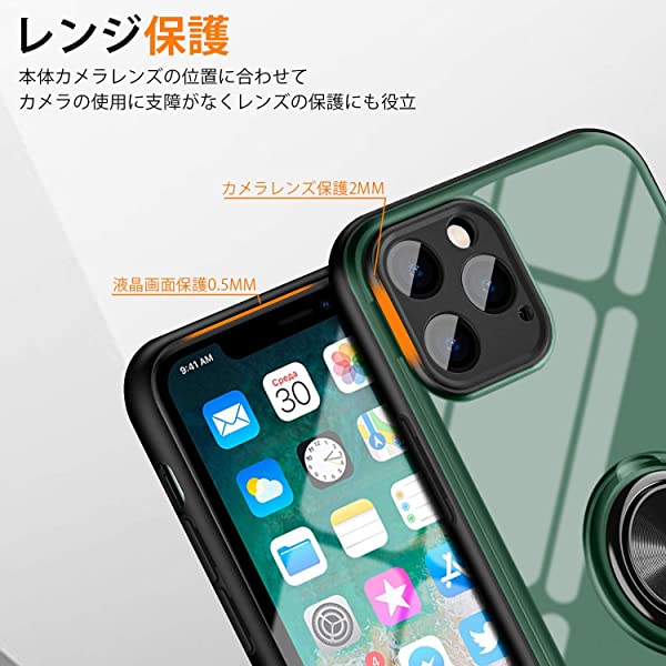 iPhone 11 ケース リング クリア ケース 耐衝撃 半透明 全面 PC TPU スマホケース 軽量 薄型 衝撃吸収 カメラ保護 車載ホルダー ...