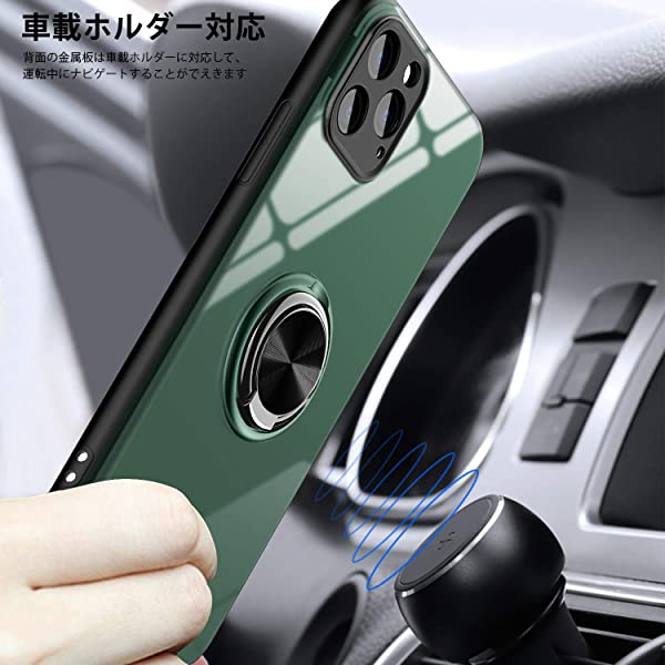 [車載スタンド対応] マグネット式車載ホルダーに対応し、内蔵メタルシートのデザインで、車の磁石支持して使用できます。 リングホルダー付きのiPhoneケースでは、リングホルダーが360度回転し、個人の快適なハンズフリー使用と多用途性を実現します。一指着る式で、指がリングに通り抜け、片