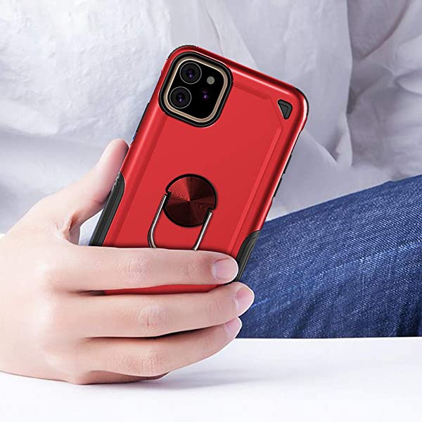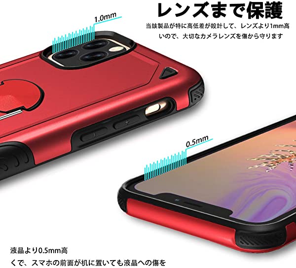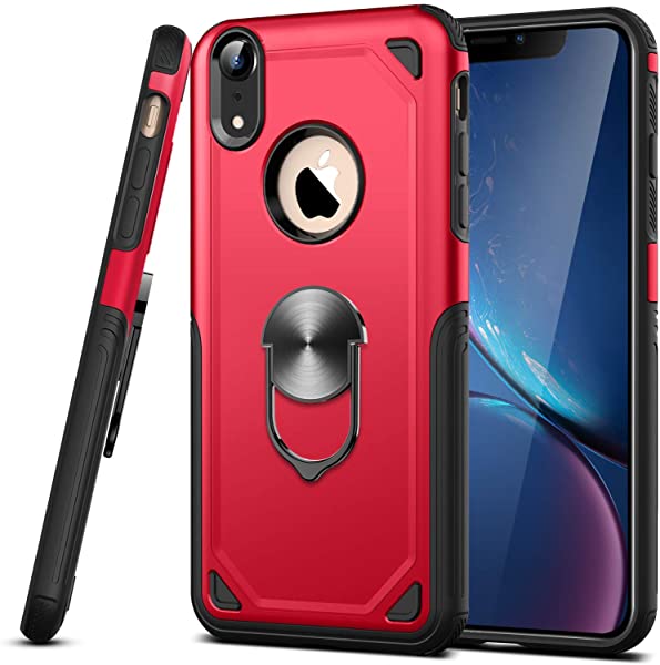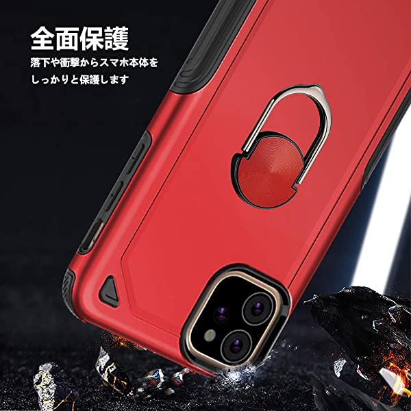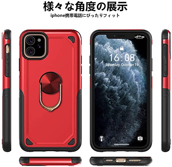 iPhone XR ケース 耐衝撃 TPU+PC素材 マグネット式車載ホルダーに対応 リング スタンド付き 9H強化ガラス仕様 背面カバー スマホカバー 三重構造 360度回転 スタンド機能 指リング ホルダー付き 黄変防止 全面保護 高 感 滑り止め付き XR DL HON 赤