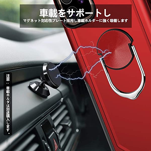 iPhone XR ケース 耐衝撃 TPU+PC素材 マグネット式車載ホルダーに対応 リング スタンド付き 9H強化ガラス仕様 背面カバー スマホ...