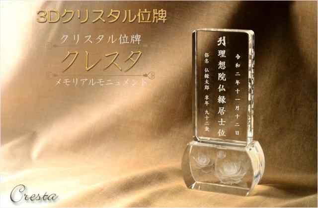 位牌【世界に一つの特別:選べる3D/UVアート クリスタル位牌 クレスタ】モダン位牌 オリジナル位牌 オーダーメイド メモリアルモニュメント 仏壇 仏具 手元供養 送料無料