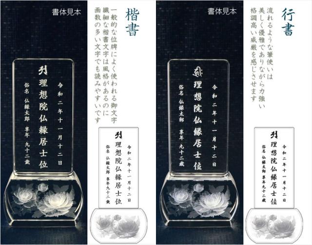 ご注文を頂いてからクリスタルに、御文字(戒名・法名)と