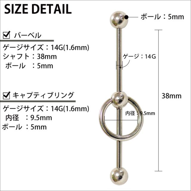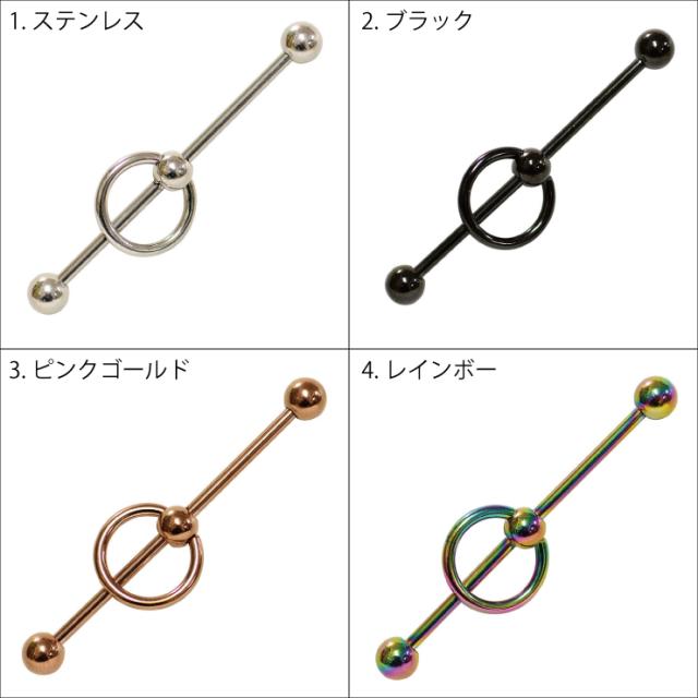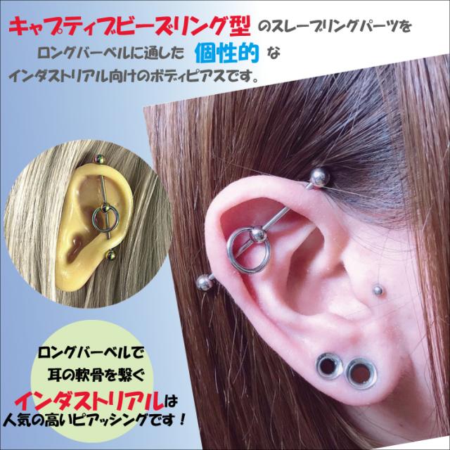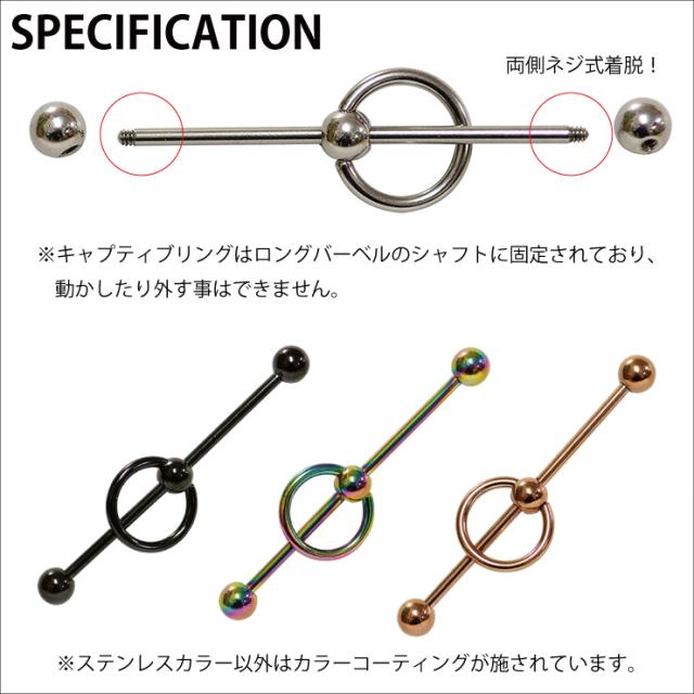【メール便対応】ロングバーベル BCR付 14G(1.6mm) ボール5mm スレイブ 4カラー ストレートロングバーベル スレーブリング サージカルステンレス【ボディーピアス インダストリアル スタンダード 14ゲージ】┃