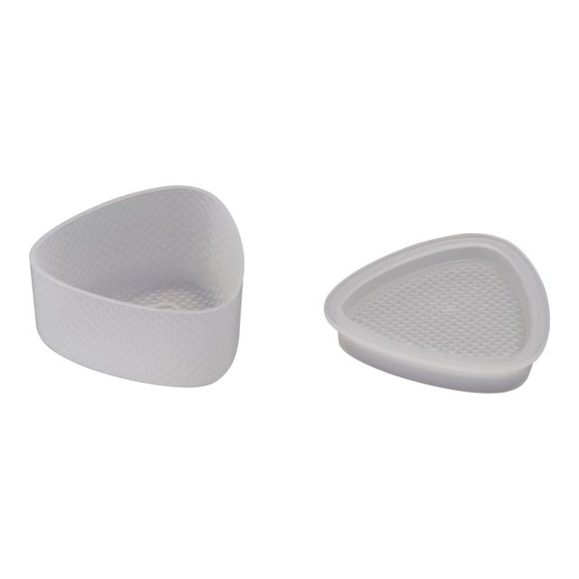 68×65×30mm Wエンボス加工のためおにぎりが簡単に抜けます。※サイズはできあがり三角おにぎりの幅×高さ×厚さです。