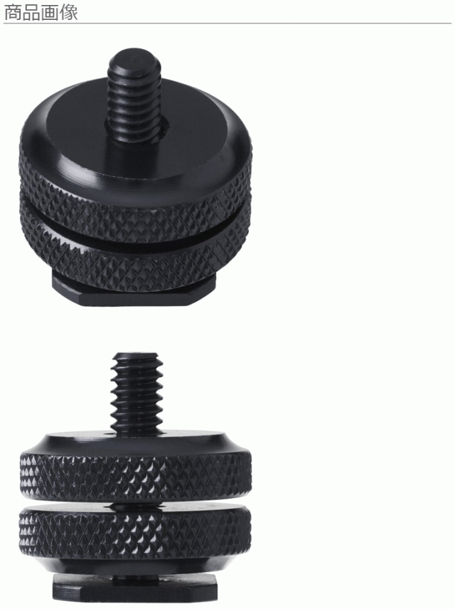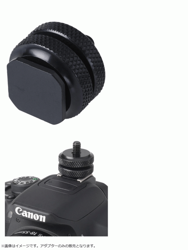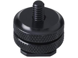 カメラアクセサリーシューに三脚用の1/4インチ対応アクセサリーを取り付け可能にするアダプター。