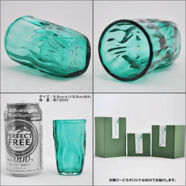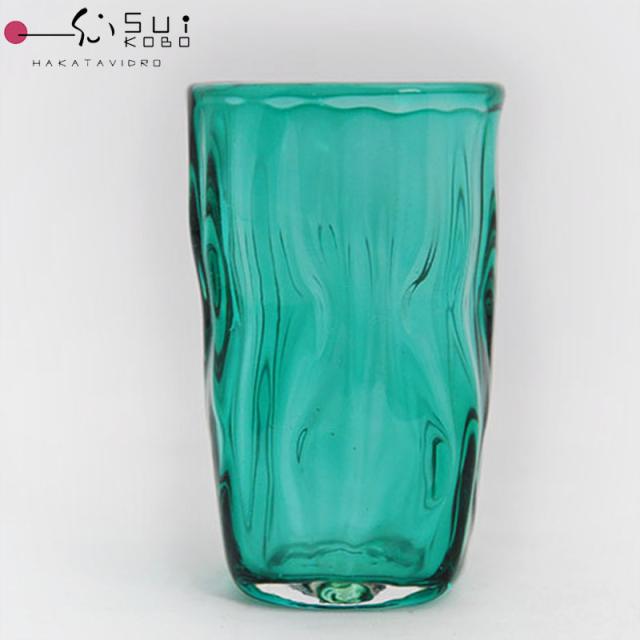 【博多びーどろ 粋工房】 大島翡翠 グラス 高さ約9.5cm ガラス製 NM-11GR 【日本製】 森田菜生製作 杯 タンブラー 贈答品 コップ お祝い ガラス 縁起物 ビール 酎ハイ ハイボール グリーン 緑