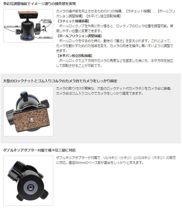 ※メーカー在庫僅少の為、納期にお時間がかかる場合があります。 PBH525 より高い固定力と多彩な調整機能を兼ね備えた新しい自由雲台