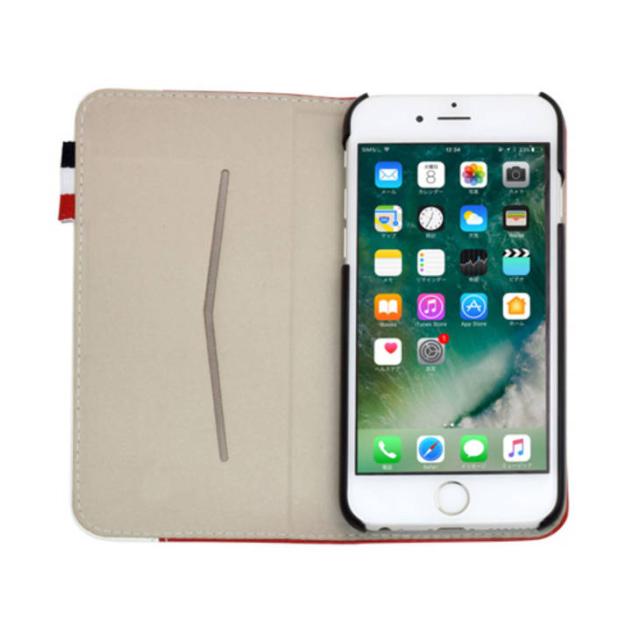高級感あるレザータッチ素材 しっかりとした縫製本製品は、高級感あるレザータッチ素材をしっかりと縫製したブックタイプケースです。ケースは人気の[bi-color(バイカラー)デザイン]で、ホワイトのストライプと4色のベースカラーからお選びいただけます。iPhoneをしっかりガード フリップカバーとハードフレームiPhoneをケースに固定するフレームは厚さ約1mmのポリカーボネイト素材を採用し、iPhoneが外れないようにしっかりと固定します。また、フリップカバー部分は最大2mmの厚みがあり、iPhoneの液晶画面を傷や衝撃から守ります。カードホルダー搭載 取り出しやすいV字スリット本製品のフリップ部分には、カードを1枚収納するっことができるスリットがあり、V字型のデザインによりカードの出し入れを簡単に行うことができます。また、緊急時の名刺入れとしてもご活用いただけます。動画視聴もラクラク 横置きスタンド機能本製品のフリップを折り畳むと、iPhoneを横置きにできるスタンドになります。家族や友人との写真やムービーを一緒に楽しむもことや、YouTubeや映画などをみる際に最適です。カバーの開閉がラクラク 開きやすく、持ちやすい設計本製品のカバーは、マグネットタイプなのでカバーの開閉がとても便利です。カバーを閉めるとピタッと閉じるので、液晶画面を傷や衝撃から守ることができます。また、カバーを開いた時、ケースの背面にカバーがピタッと貼り付き固定することができます。開きやすく、持ちやすい設計となっております。