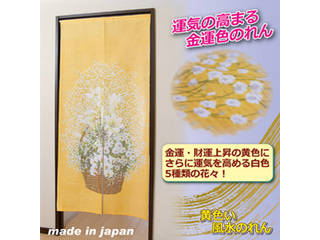 808337 人気の黄色に5種類の花の、運気の高まるのれん。