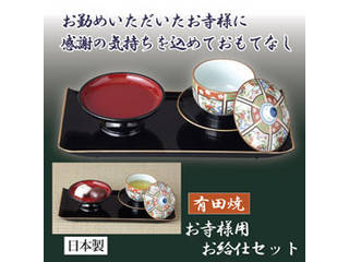 ●お勤めいただいたお寺様にお出しするお給仕セット。●お盆にはノンスリップ加工済み。仏事の際に、お勤めいただいたお寺様にお茶を出す時にお使いいただくお給仕セットです。湯呑は有田焼で華やかな絵柄が描かれています。お盆の表面には、滑りにくいようノンスリップ加工が施されてます。ちょっとしたことですが、感謝の気持ちを込めて「おもてなし」を表すことができます。
