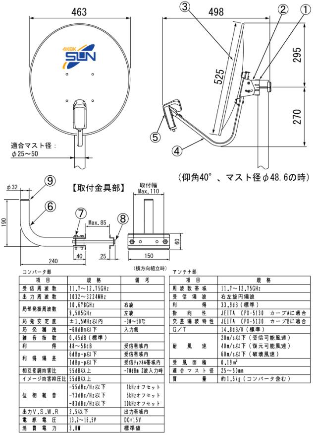 ■JEITA CPX-5130「BS・110度CS放送右左旋偏波受信アンテナの定格と所要性能」に準拠しています。