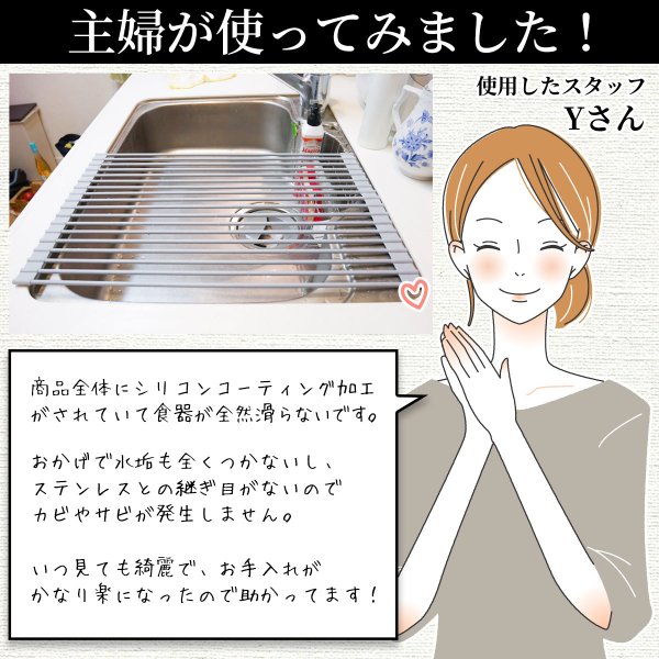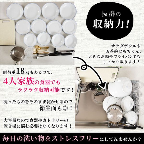 - シンクに置いてみると、ピッタリあって白色で台所も明るくなりました。食器も立てれて水切りもできて、買って良かったです。
