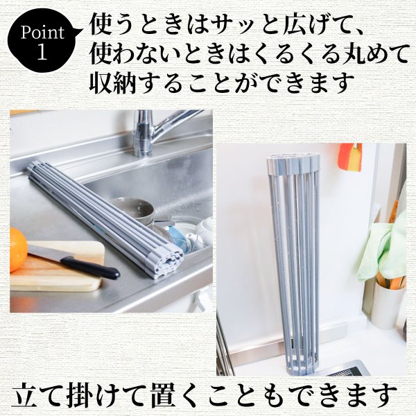 折りたたみ式の水切りラックです。小さくたためる設計でシンク周りのスペースを有効活用できます♪