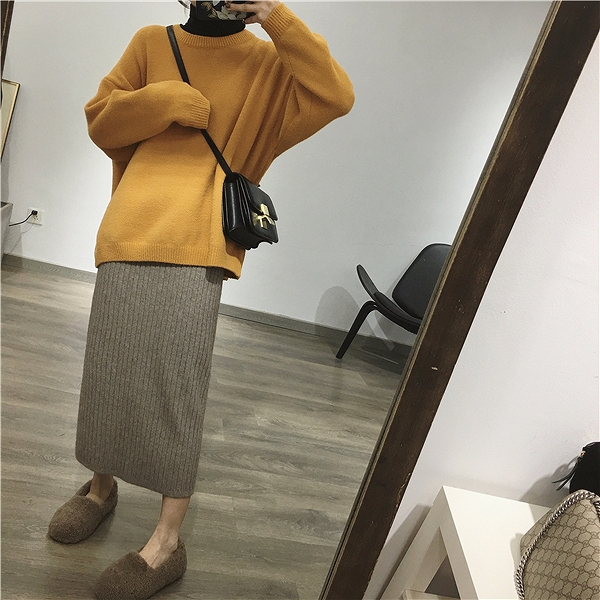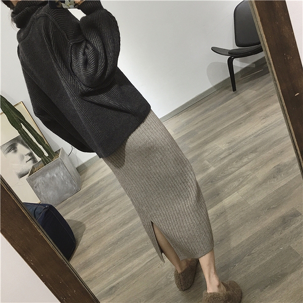 スカート レディース スカート ボトムス 秋 冬 カジュアル コーデ シンプル 定番 セレカジ 20代 30代 40代 リブニット スリット スカート ハイウエスト ミモレ丈 キレナチュ