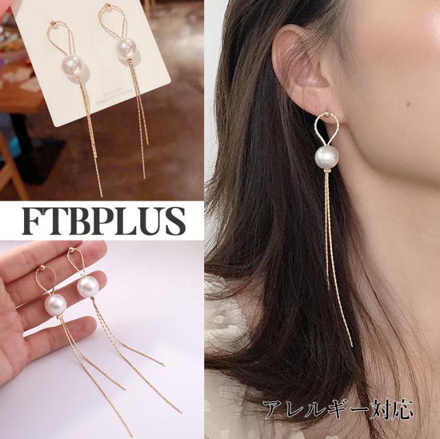 ロングピアス 18金 仕上げ 揺れる パール タッセル 韓国ファッション アレルギー対応 ポイント消化 誕生日 母の日 プレゼント