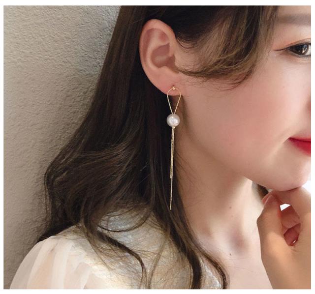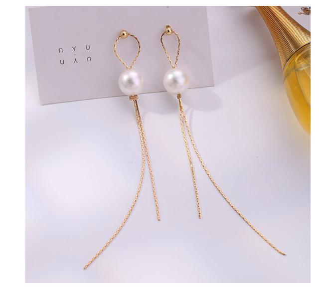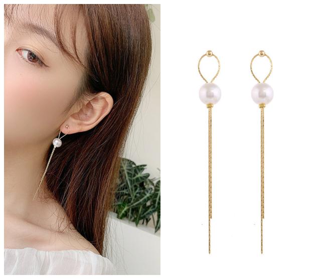 洗練されたデザイン人気の揺れるタッセルパールピアス。