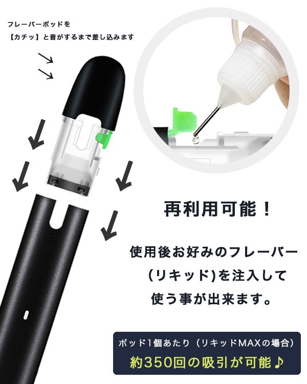 お気に入りのリキッドを注入して使えます。約5回ほど繰り返し使用可。