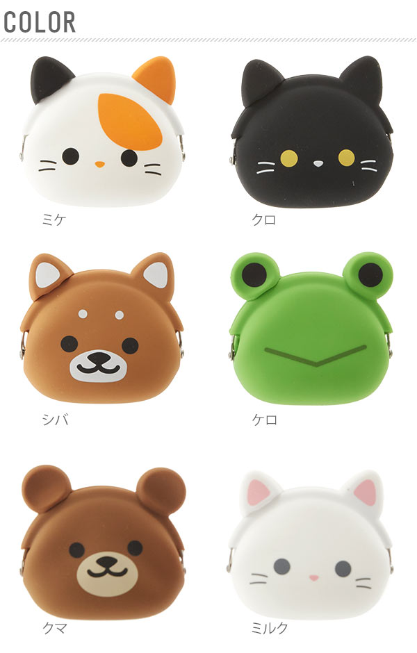 とってもかわいい動物たちのシリコン製がまぐちシリーズ♪コロンとしたフォルムだから見た目以上に入るので収納力も抜群!耳の部分がパチンとしっかり閉まるのでがまぐちとしてバッチリ使えます。小銭やアクセサリー、キャンディやお薬を入れるミニポーチにしたり♪箱に入っているので、猫好きや犬好きへのプレゼントにもおすすめ