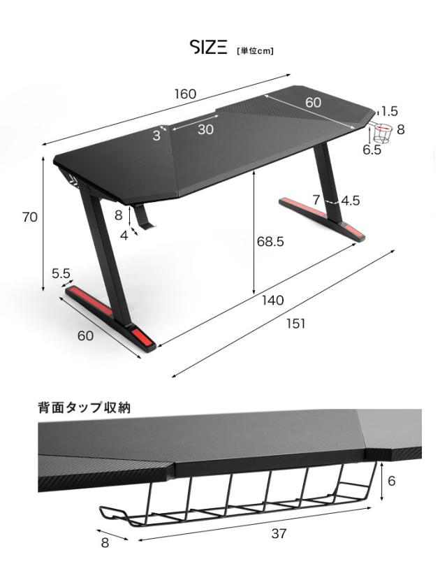 ゲーミングデスク 幅160cm 背面収納付き ヘッドホンフック ドリンクホルダー ゲームデスク ゲーミング ワークデスク つくえ 机 PCデスク パソコンデスク オフィスデスク 160 160cm CYBER-GROUND