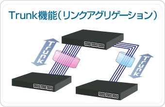 ■スイッチ間の接続に広帯域を確保する Trunk(リンクアグリゲーション)機能