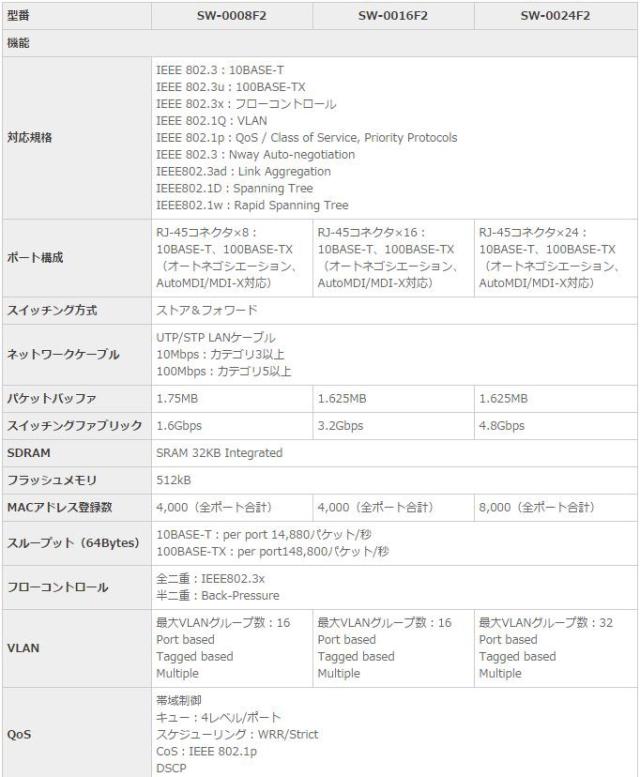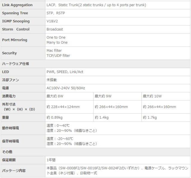 | 16ポート 10M/100M WEBスマートスイッチ SW-0016F2 スペック情報 | |