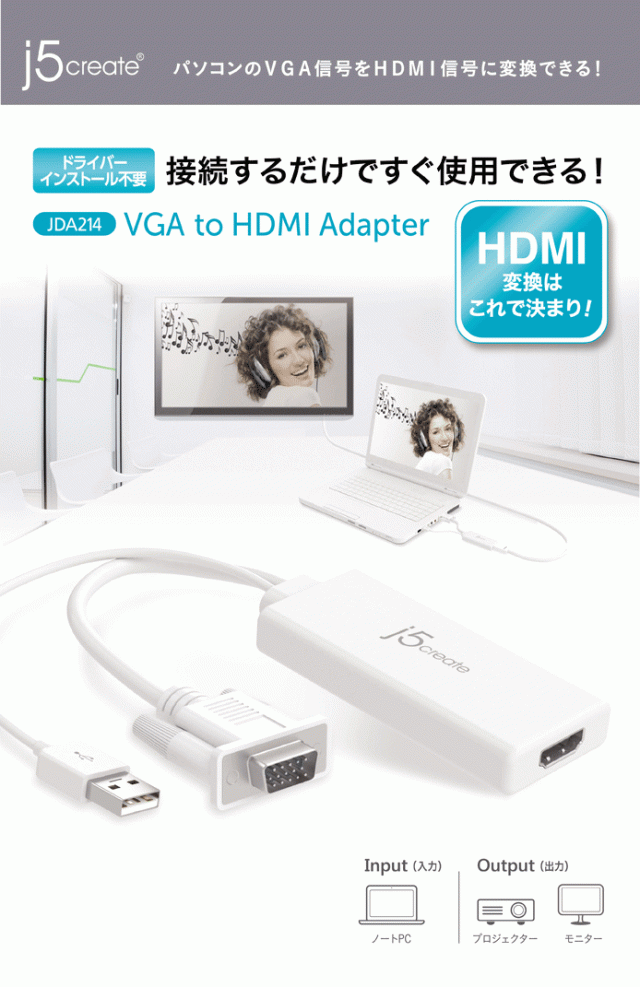 j5 create VGA to HDMI+audio変換アダプター JDA214