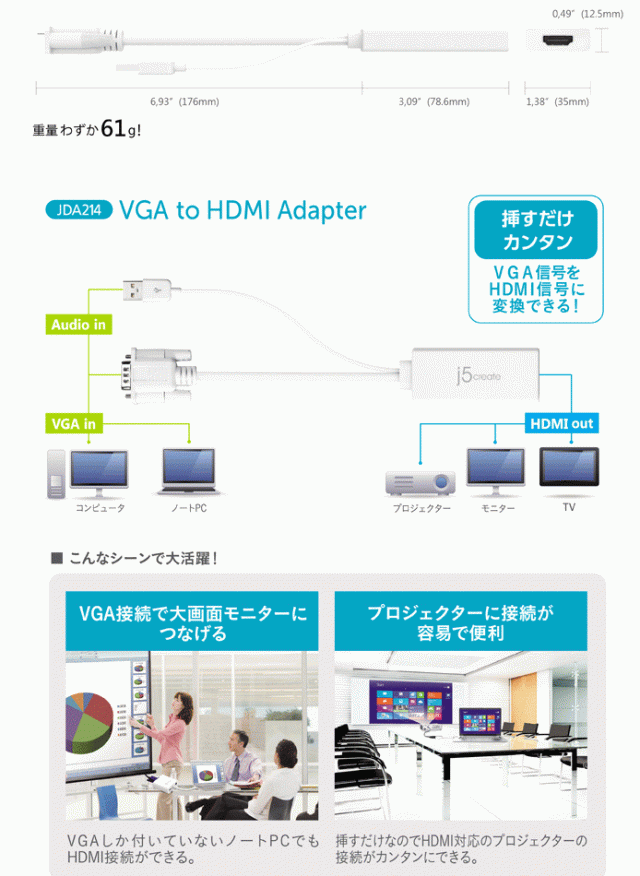 | VGA to HDMI+audio変換アダプター JDA214 スペック情報 | |