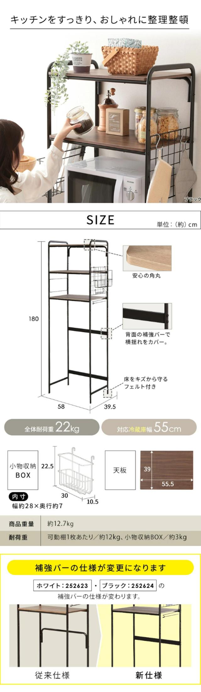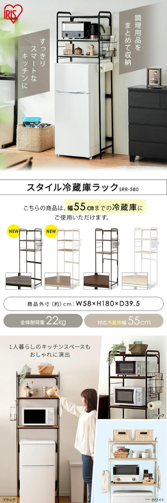 冷蔵庫 ラック スタイル冷蔵庫ラック SRR-580 送料無料 キッチンラック レンジラック スリム 冷蔵庫上 収納ラック キッチン おしゃれ キッチン収納 冷蔵庫上ラック オープンラック レンジ上ラック レンジ上 一人暮らし アイリスオーヤマ