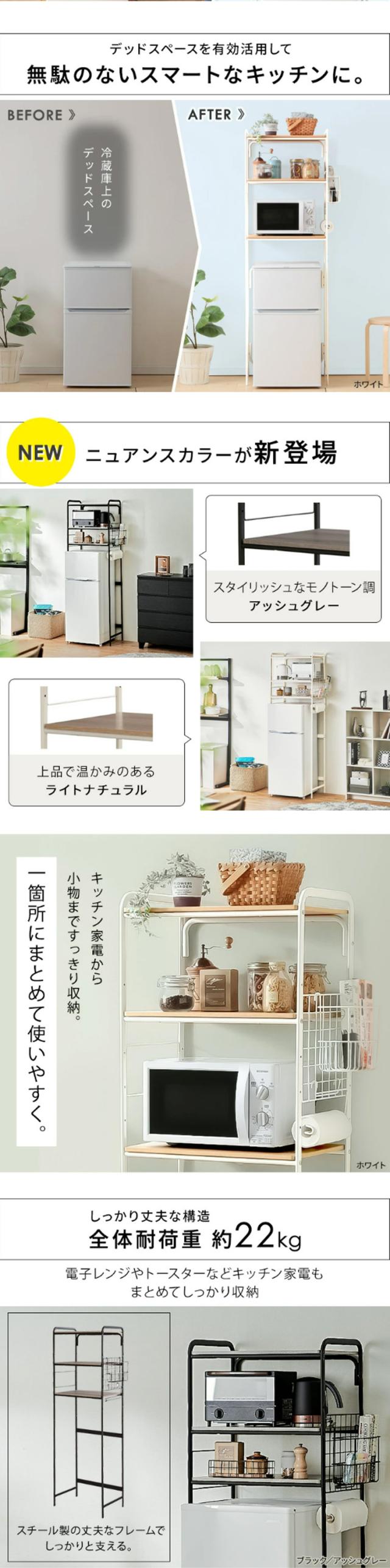 空いている冷蔵庫の上をたっぷり収納スペースにしてくれる冷蔵庫ラックです。