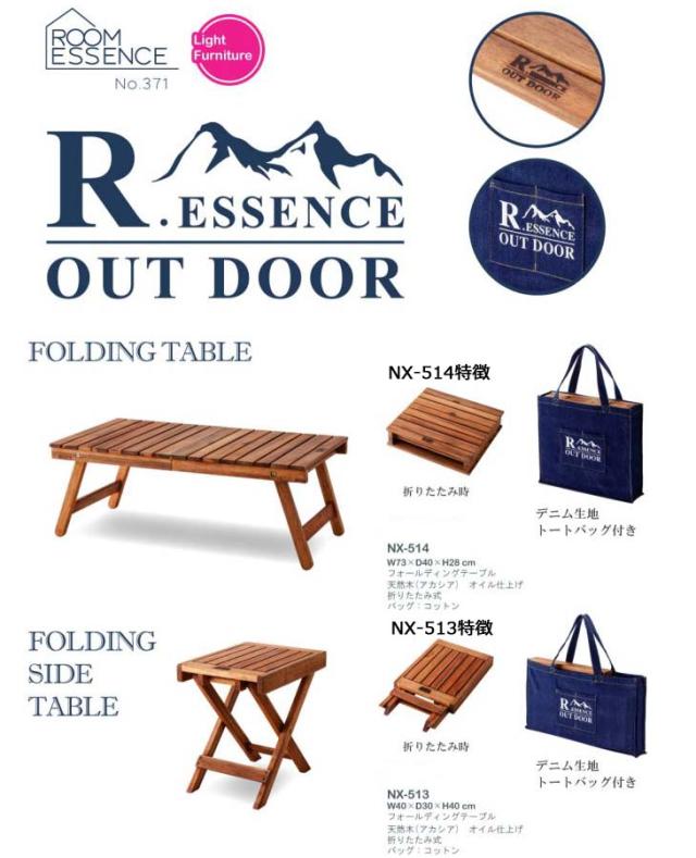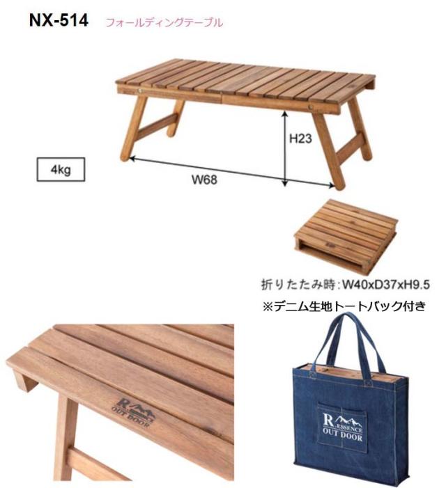 折りたたみOK 移動に便利なデニムトート付き キャンプ BBQ アウトドア ROOM ESSENCE NX514 アウトドアにお薦め!便利なトートバッグ付き!風合いの良い天然木(アカシア)オイル仕上げ!