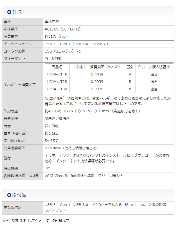 I・O DATA アイ・オー・データ USB3.1 Gen1(USB3.0)/2.0対応外付けハードディスク ファン内蔵 電源内蔵 3TB HDJA-UT3R