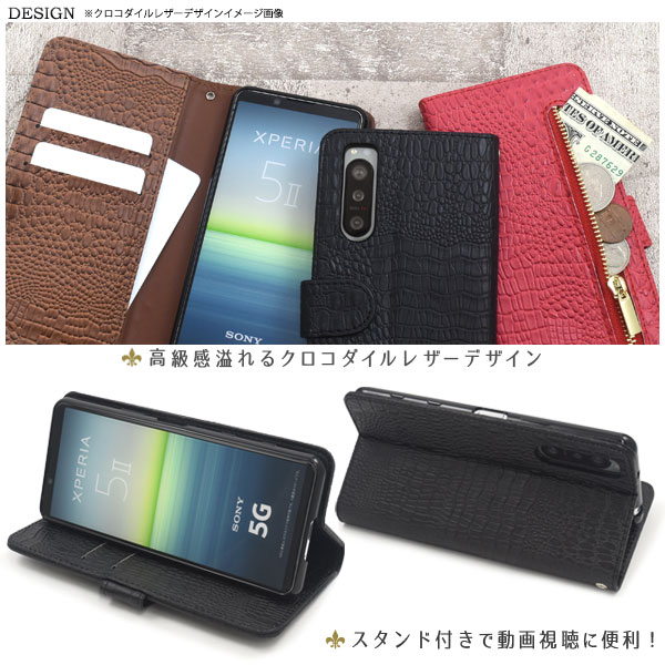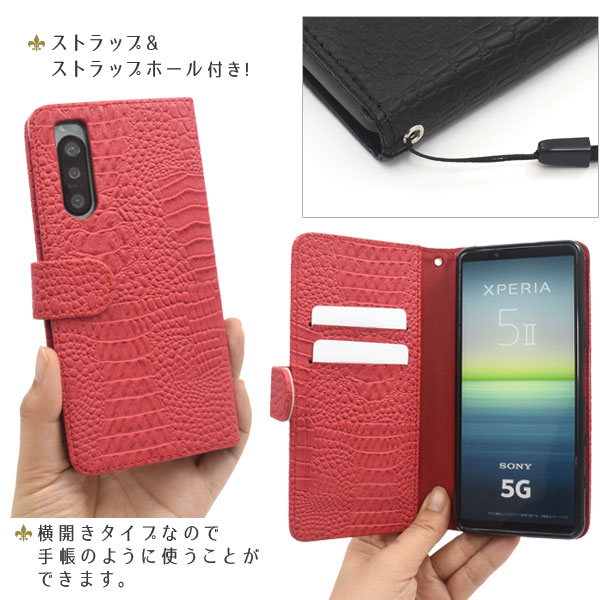 スマートフォンケース Xperia5 II SO-52A SOG02 A002SO クロコダイル レザーデザイン スマホケース 上品 お洒落 携帯ケース エレガント コンサバ オシャレ おしゃれ スマホカバー ワニ柄 クロコダイルケース 大人っぽい スマホアクセサリー