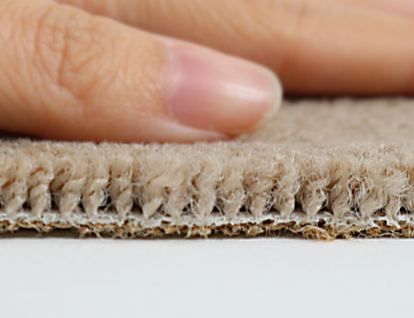 耐久性が高く、へたりにくくて擦り切れにくいナイロン素材を使用しています。カーペット用に開発された長繊維のナイロン素材で、遊び毛や毛玉が発生しにくくなっています。また防汚加工を施してあり、汚れが付着しにくく撥水性能も有しています。